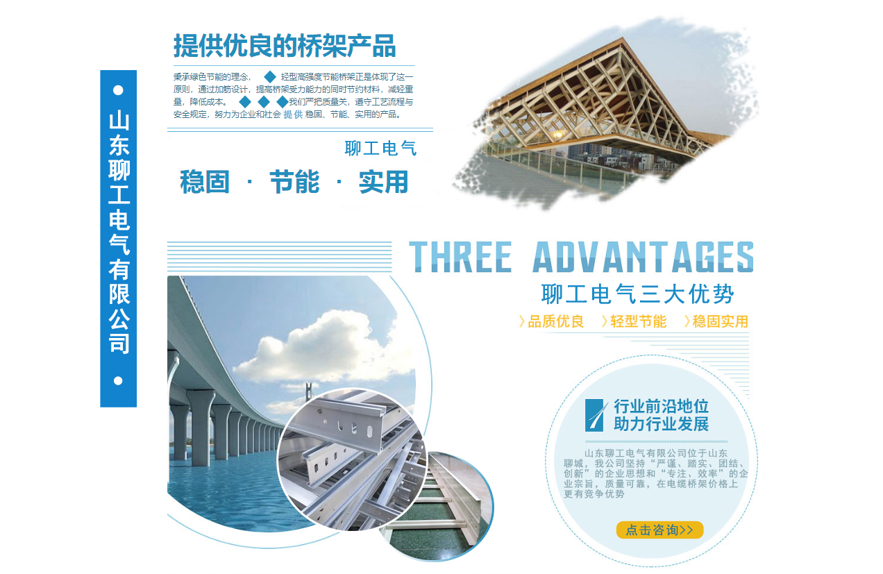 山東聊工電氣有限公司位于山東聊城,是一家銷售各類橋架的公司,公司主營(yíng)鍍鋅防火噴塑橋架,鍍鋅防火電纜橋架 ,不銹鋼電纜橋架,熱浸鋅電纜橋架,鋁合金電纜橋架,熱鍍鋅電纜橋架,梯式電纜橋架等我公司堅(jiān)持“嚴(yán)謹(jǐn)、踏實(shí)、團(tuán)結(jié)、創(chuàng)新”的企業(yè)思想和“專注、效率”的企業(yè)宗旨,質(zhì)量可靠,在電纜橋架價(jià)格上更有競(jìng)爭(zhēng)優(yōu)勢(shì)。公司追求品質(zhì),配有研發(fā)人員,進(jìn)行產(chǎn)品的改革和創(chuàng)新,服務(wù)先進(jìn)走出了一條富有企業(yè)特色的可持續(xù)化發(fā)展之路! 我公司鄭重向你承諾:保證最好的質(zhì)量,以低的價(jià)格,完善的售后服務(wù),來(lái)答謝新老客戶。可提前電話聯(lián)系。...